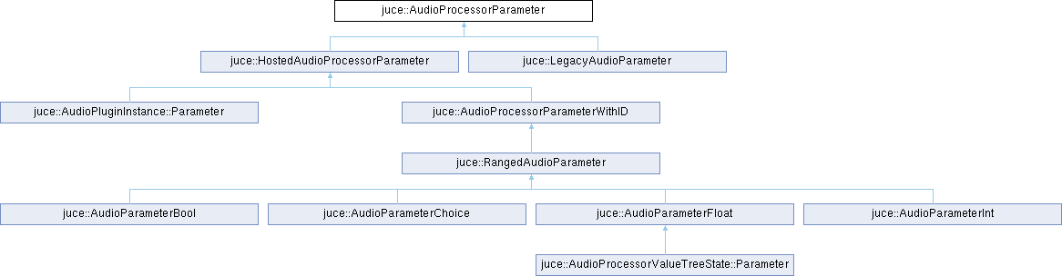 Reimplemented in juce::AudioParameterBool, juce::AudioParameterChoice, juce::AudioParameterFloat, juce::AudioParameterInt, juce::AudioProcessorValueTreeState::Parameter, juce::LegacyAudioParameter, and juce::RangedAudioParameter.