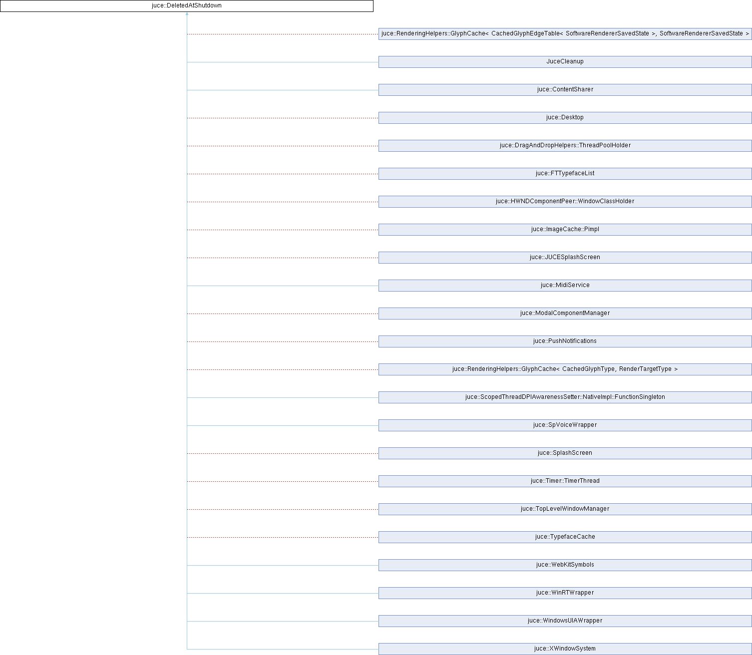 After JUCEApplicationBase::shutdown() has been called, any objects derived from DeletedAtShutdown which are still in existence will be deleted in the reverse order to that in which they were created.
