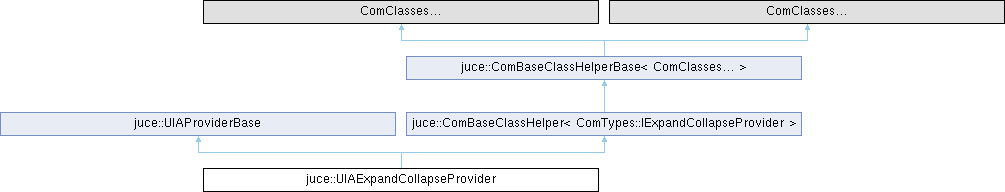 | Public Member Functions inherited from juce::ComBaseClassHelper< ComTypes::IExpandCollapseProvider > | |