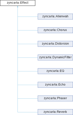 Implemented in zyncarla::Alienwah, zyncarla::Chorus, zyncarla::Distorsion, zyncarla::DynamicFilter, zyncarla::Echo, zyncarla::EQ, zyncarla::Phaser, and zyncarla::Reverb.
