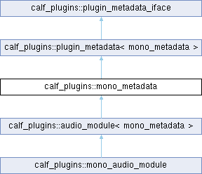 | Public Types inherited from calf_plugins::plugin_metadata< mono_metadata > | |