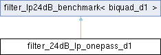 | Public Member Functions inherited from filter_lp24dB_benchmark< biquad_d1 > | |
