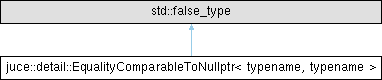 Inheritance diagram for juce::detail::EqualityComparableToNullptr< typename, typename >: